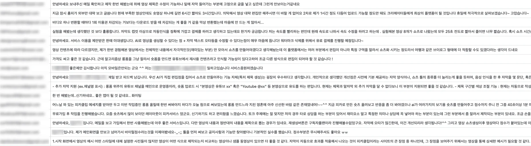 피카클립 유저분들로부터 자막, 구간, 음악과 관련한 다양한 피드백을 받았습니다.