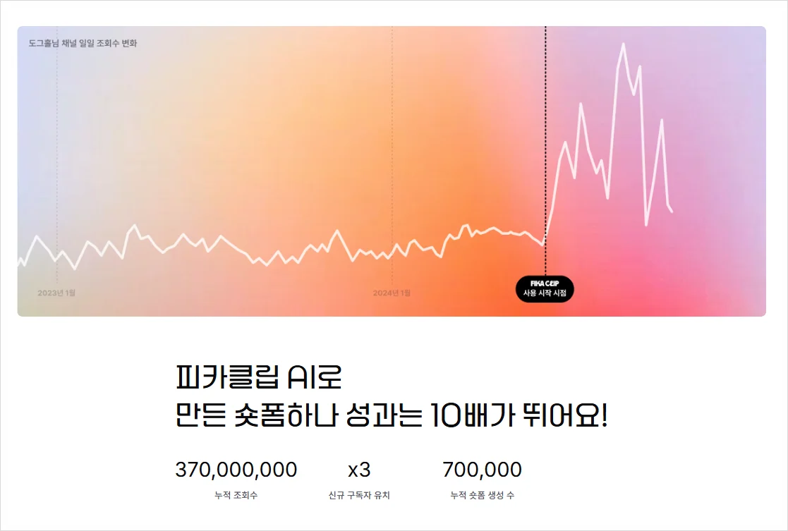AI 숏폼 생성툴 피카클립을 활용해 업로드 주기를 높이고, 쇼츠 성과 개선을 시도해 보세요.