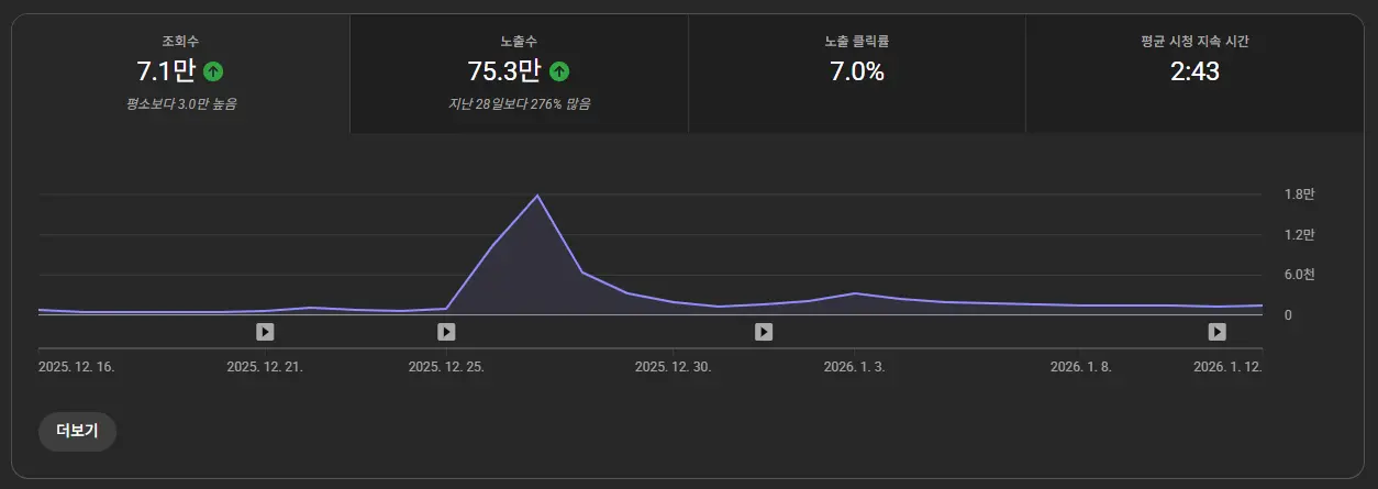 중요한 것은 데이터를 보고 끝내는 것이 아니라, 해석한 뒤 다음 콘텐츠에 반영하는 것입니다. 조회수가 저조하다면 위 지표들을 하나씩 점검해보고, 차근차근 개선해 보시길 추천드립니다.