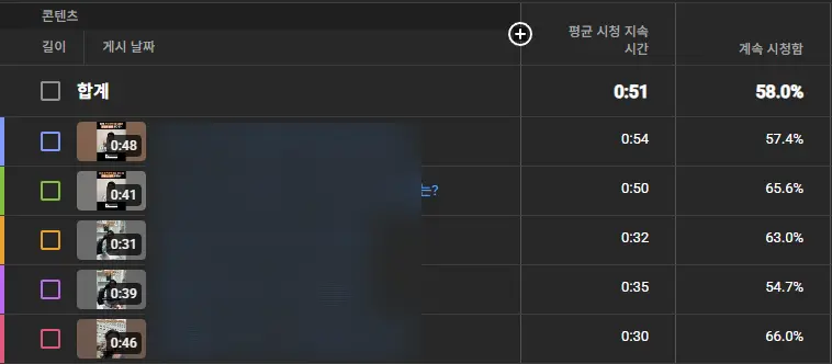특히 영상 시작 후 5~10초 구간에서 급격한 이탈이 발생하는지, 혹은 특정 구간에서 유지율이 크게 떨어지는 지점을 반드시 확인해야 합니다.