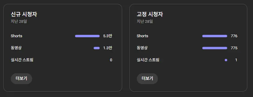 재방문 시청자 비율만 높고 신규 시청자가 적다면 → 제목과 썸네일, 설명 방식이 기존 구독자에게만 맞춰져 있을 가능성이 큽니다.