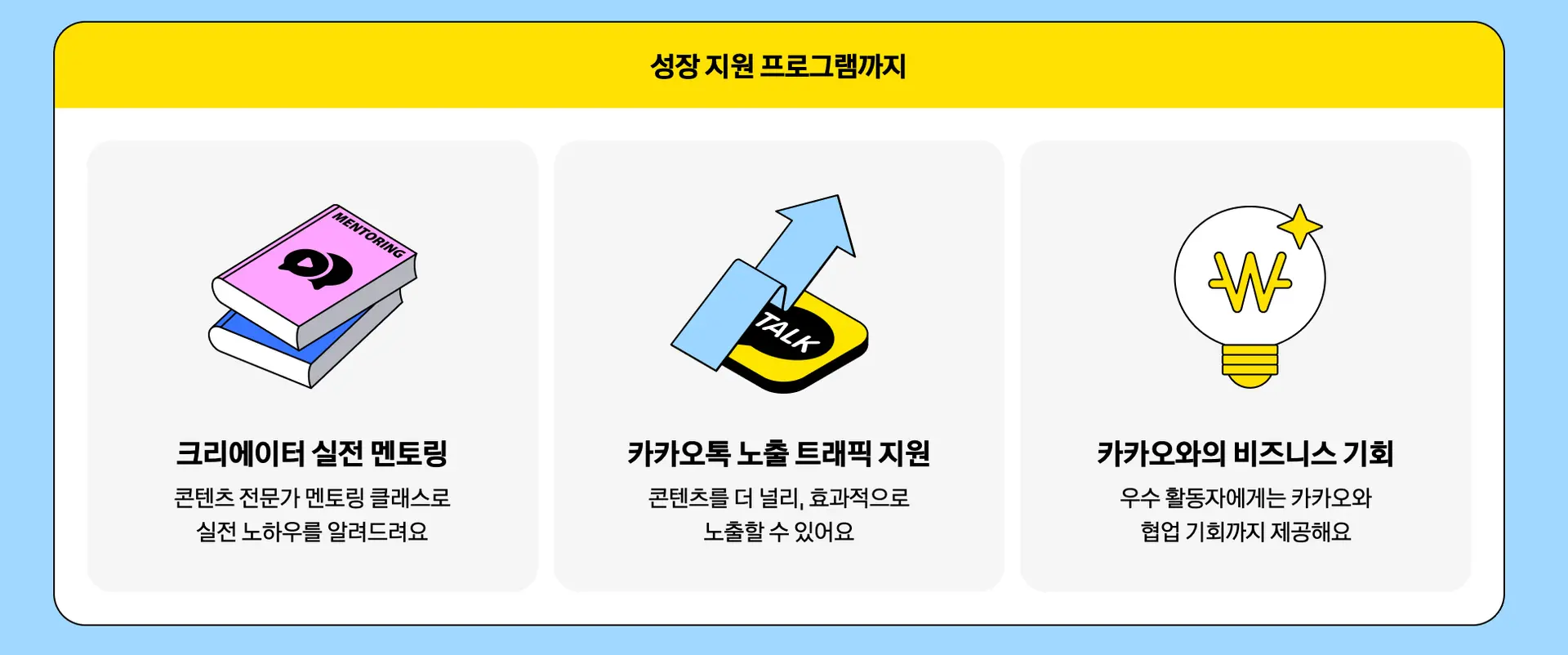 우수 크리에이터에게는 카카오와의 비즈니스 협업 기회도 주어집니다.