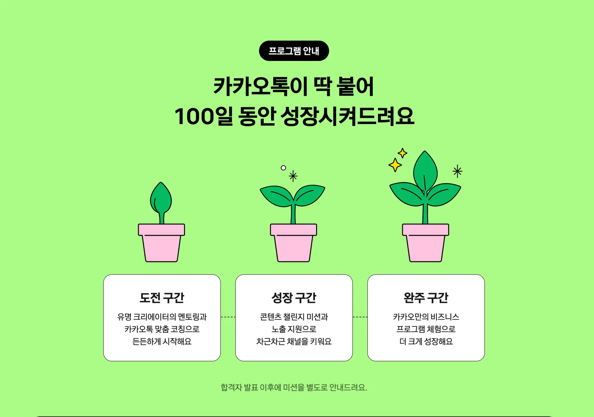 유명 크리에이터의 멘토링과 카카오톡 맞춤 코칭으로 시작