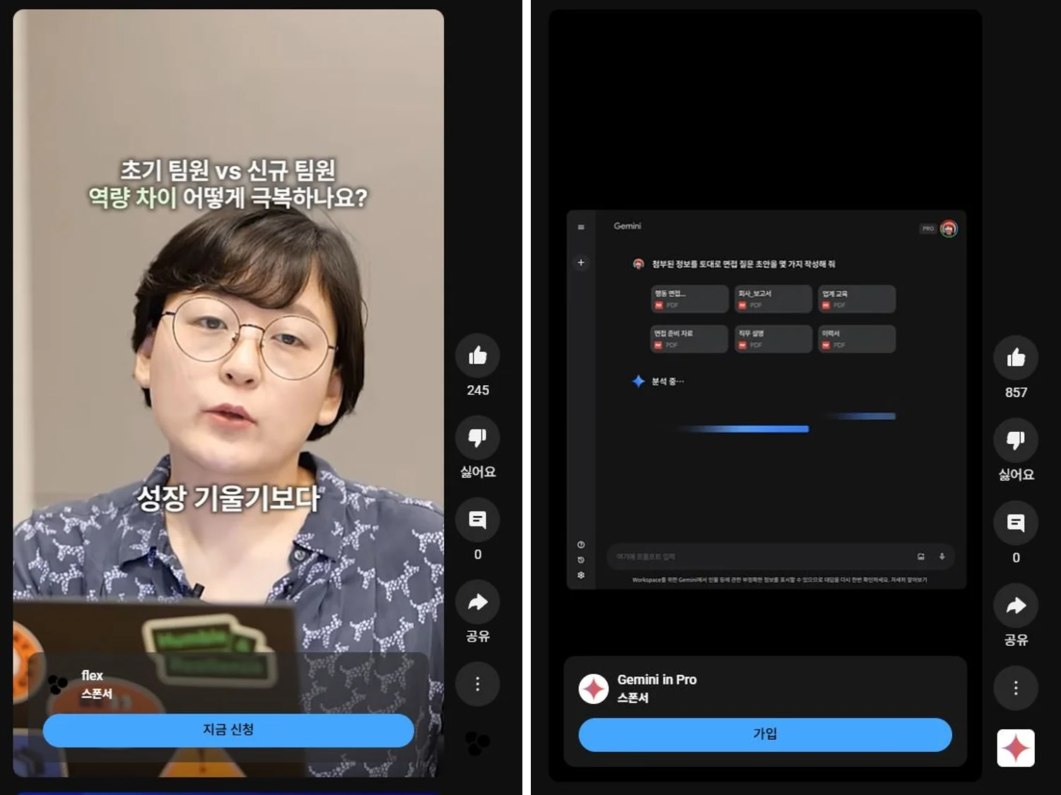방식: 유튜브 쇼츠 피드 사이사이에 광고가 자동으로 삽입
