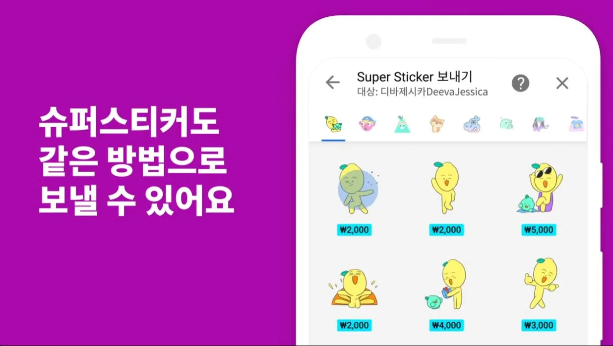 슈퍼스티커: 애니메이션 스티커를 유료로 구매해 전송