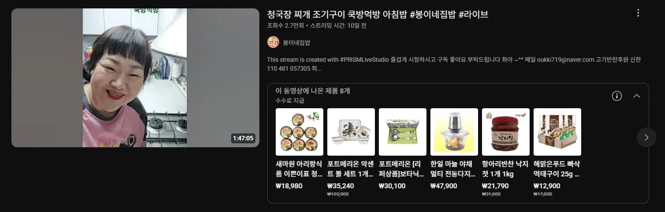 방식: 영상에 상품 태그 → 시청자가 클릭 후 바로 구매 가능
