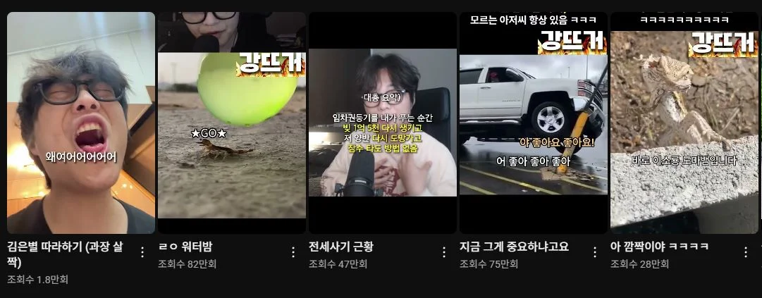 '강뜨거 더빙 뿌리기'라는 유행어를 탄생시킬 정도로 독특하고 차별화된 콘텐츠를 선보였는데요. 현재는 구독자 약 61만명을 보유하고 있습니다.