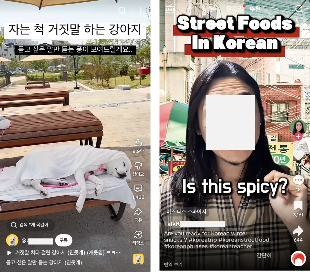 틱톡은 화면 오른쪽, 위, 아래에 UI가 가장 많아 화면 활용에 제약이 큽니다.
