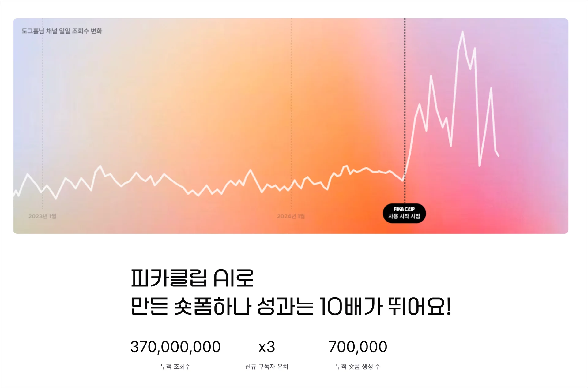 때문에 피카클립 AI로 만든 숏폼의 성과는 분석 없이 만든 숏폼에 비교했을 때,