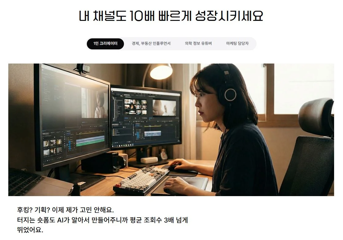 : 별도의 편집자를 두기 어려우며, 시간이 한정되어 있는 개인 크리에이터
