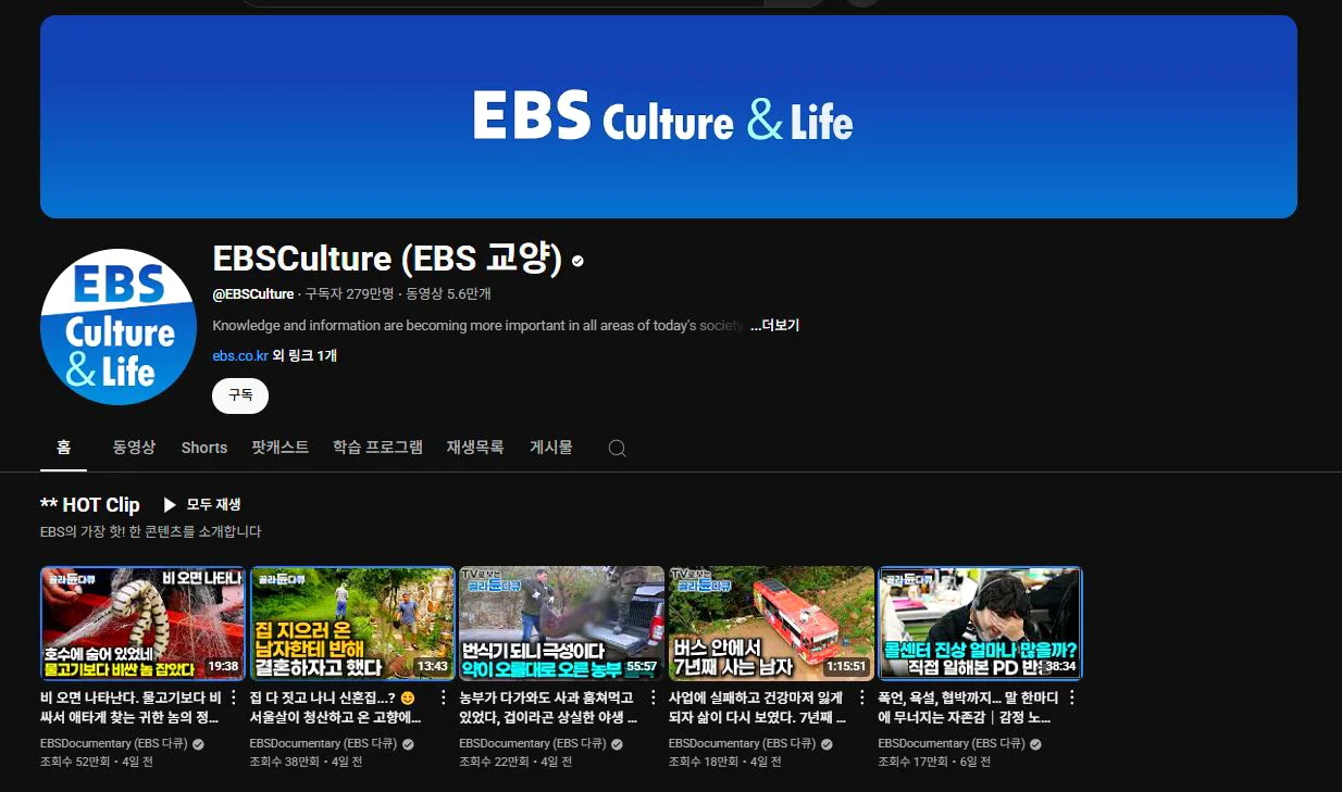 EBS는 대한민국을 대표하는 교육 전문 채널로, 신뢰도 높은 교육 콘텐츠와 다큐멘터리를 꾸준히 제작해왔습니다. 특히 지식·교양 분야에서 탄탄한 브랜드 이미지를 쌓아왔는데요.
