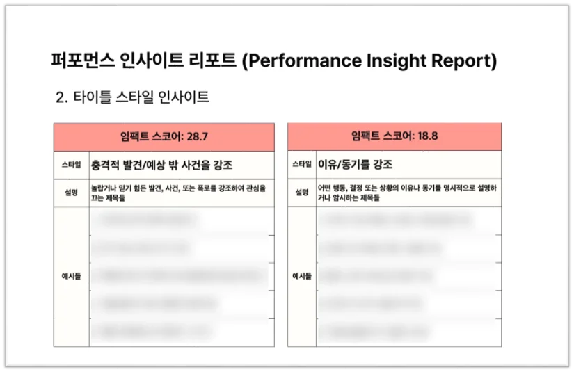 성과 높은 주제 도출 : 예) 시청자의 기본적 욕구를 자극하는 주제가 높은 조회 수를 기록하는 경향 확인